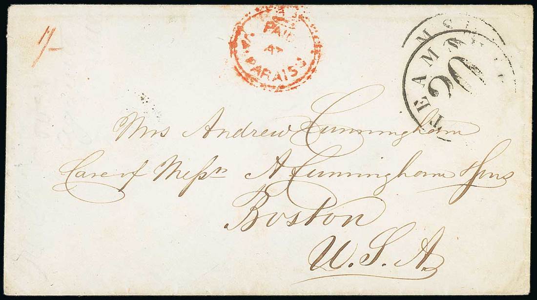 1856 (29 June) envelope (complete with long letter) from Santiago to USA, showing near complete Crowned Circle "paid/at/valparaiso" with double strike of "steamship/20" handstamp, despatch datestamp on reverse. Photo