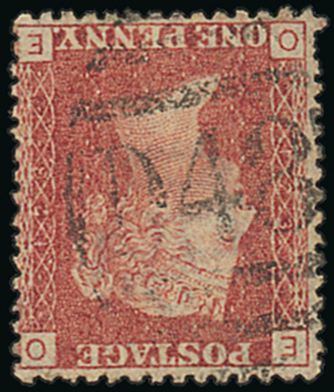 1d. rose-red Plate 123, OE, with a fine strike applied inverted. B.P.A. Certificate (1975). Photo