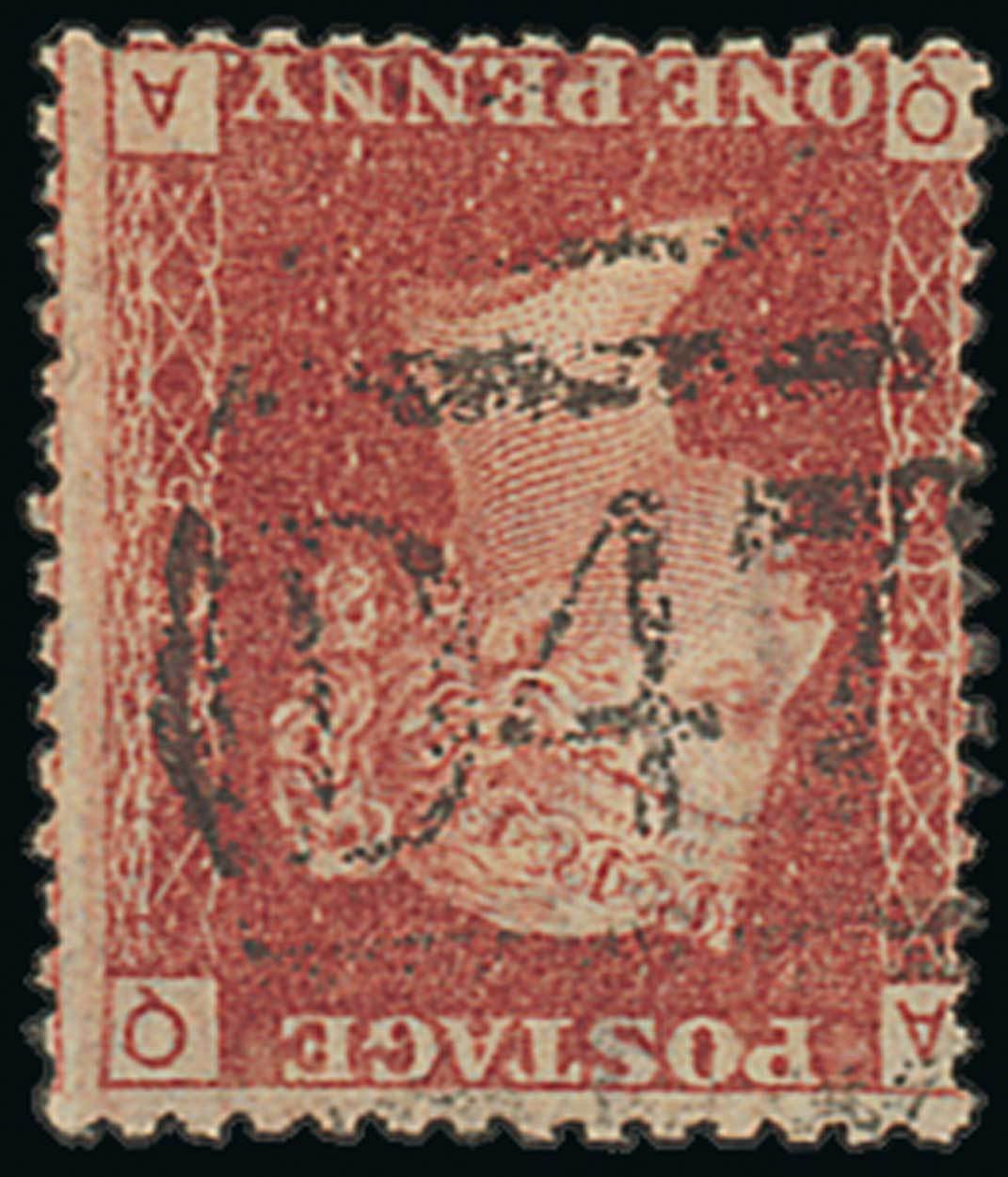 1d. rose-red Plate 205, QA, with a fine strike applied inverted. Scarce. Photo