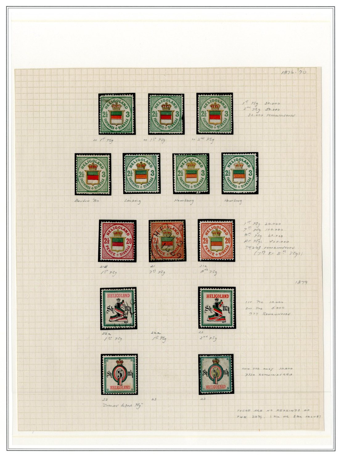 A collection mostly comprising a specialised study neatly mounted and written on leaves, 118 stamps with a range of originals mostly identified by printing, used throughout; also two cards and an envelope; mixed condition though a useful reference collection of these interesting stamp