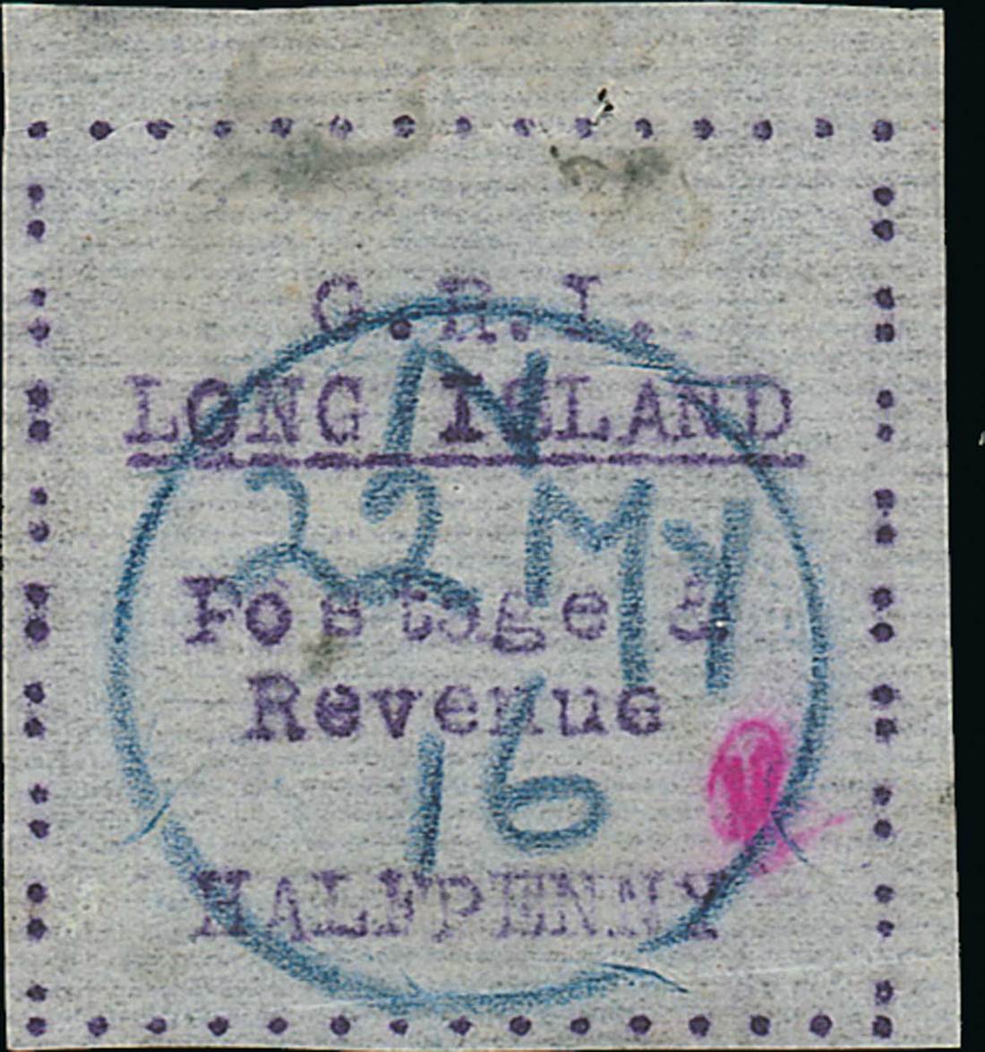1916 (May) thin horizontally laid paper, carbon ½d. mauve cancelled "n/22 my/16" in blue; trace of soiling and horizontal crease at foot. Scarce. S.G. 9, £700. Photo