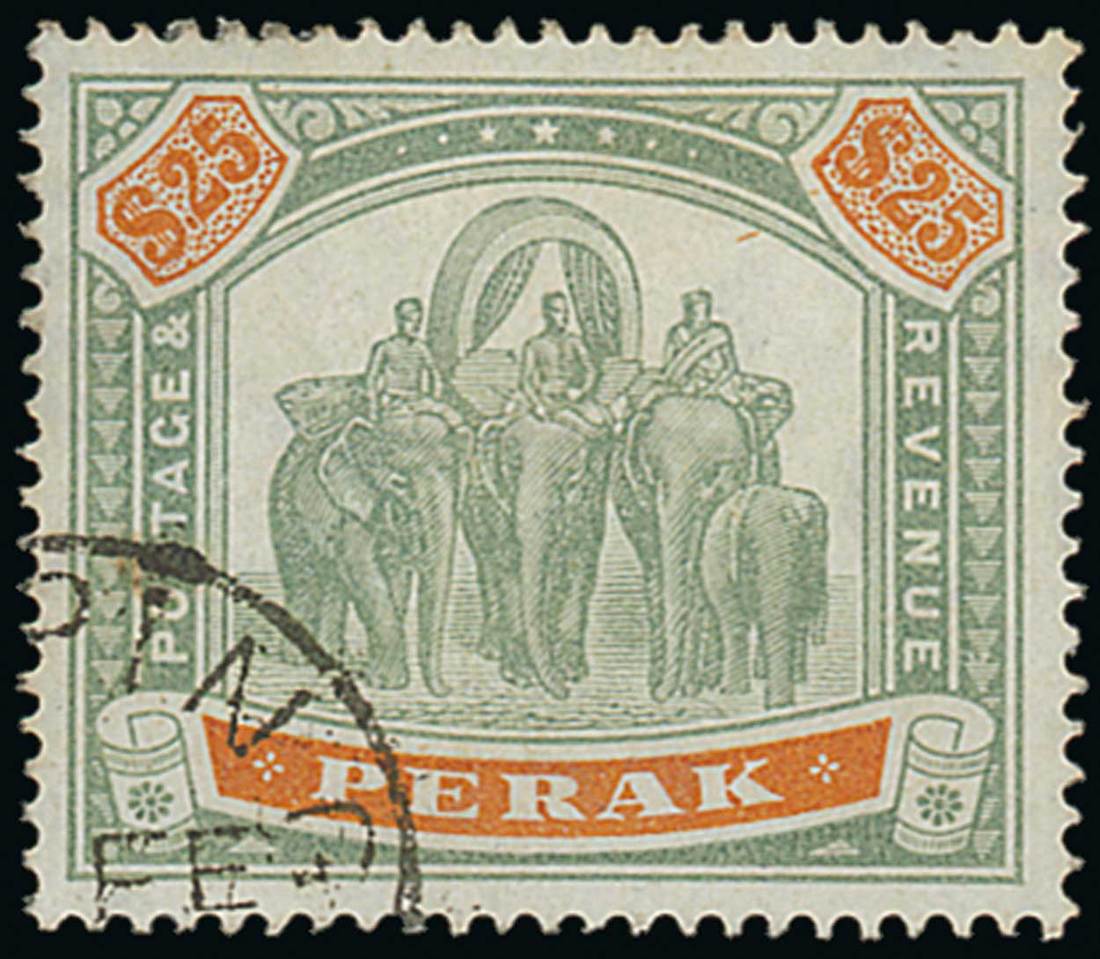 1892-95 set of four, 1895 3c. on 5c. (5 with a plate block of four, 1895-99 1c. to $2, $5 and $25, and 1900 Surcharge set of seven, all postally used; quite a few faded or toned and the $25 also with a thin spot, otherwise sound. B.P.A. Certificate (2005) for $25. S.G. 61-87 group. Photo for $25