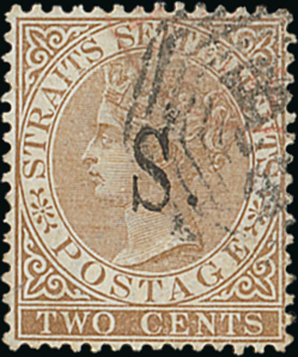 1882 CA 2c. brown overprinted "s.", cancelled with small part "B/172"; rubbed and creased towards top though of good appearance. A presentable example of this very rare stamp. B.P.A. Certificate (2005). Sc. 3; S.G. 8, £4,500. Photo