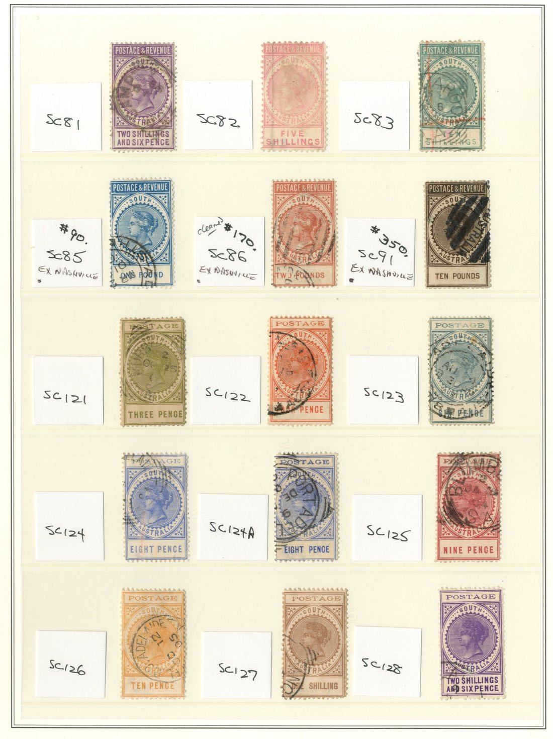1855 2d. and 6d. (3 with a pair), 1856-58 1d., 2d. (4 with a pair), 6d. and 1/-, 1858-59 1d., 2d., 6d. and 1/-, 1860-69 selection (15) to 2/-, 1867-70 small group, 1868-79 selection to 2/- and a range of later issues including Tall Stamps to £10, a couple of the high values with doubtful cancellations; fair to fine