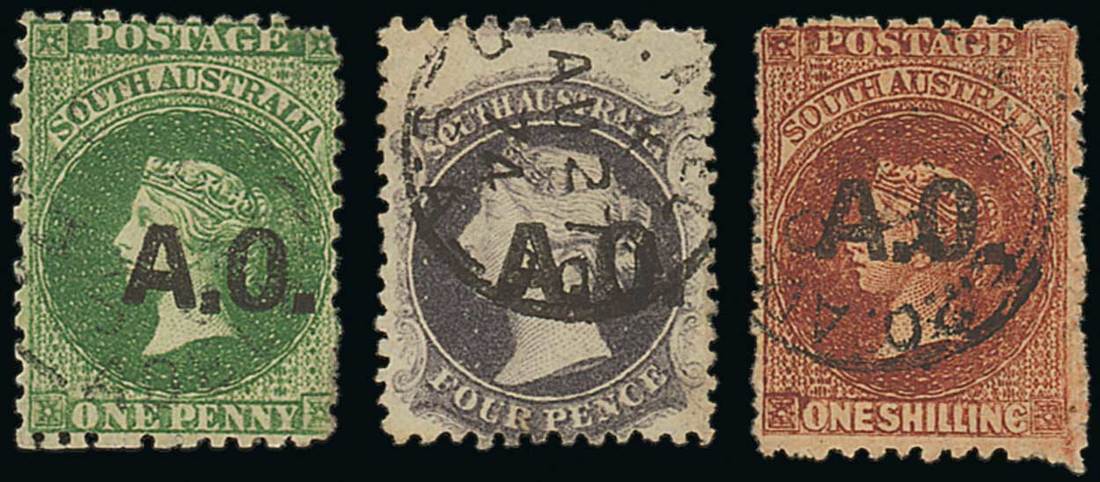 In black: Perf. 12 1d. (two short perfs. at top), perf. 10x12 4d. and perf. 12 x roulette 1/-. (5R, 2R, 2R). Photo
