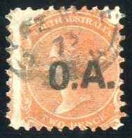 In black: Perf. 10 Crown SA 2d., part 1873 datestamp; fine. (S)