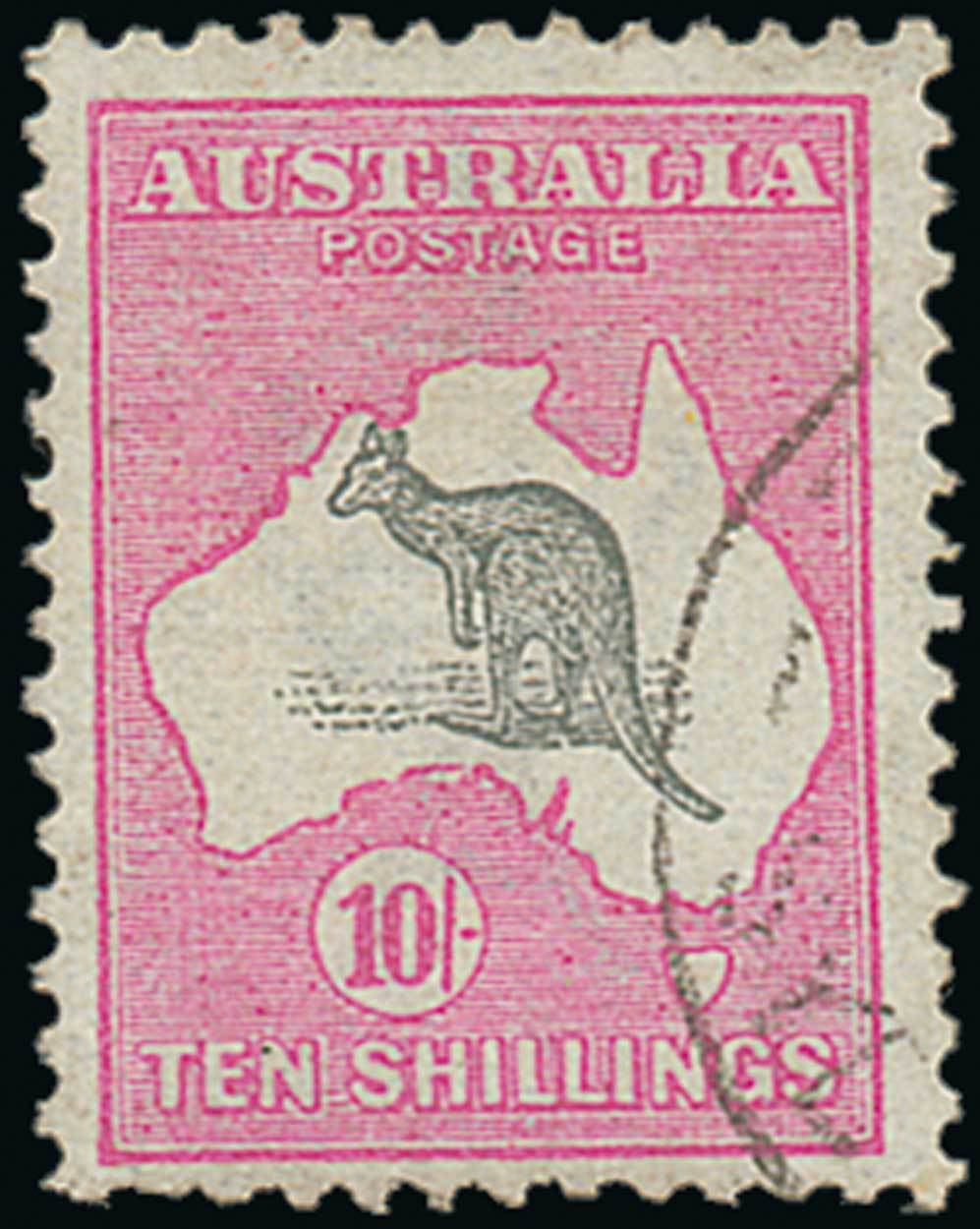 10/- grey and pink, small part Sydney datestamp; sound. Sc. 13; S.G. 14, £700. Photo