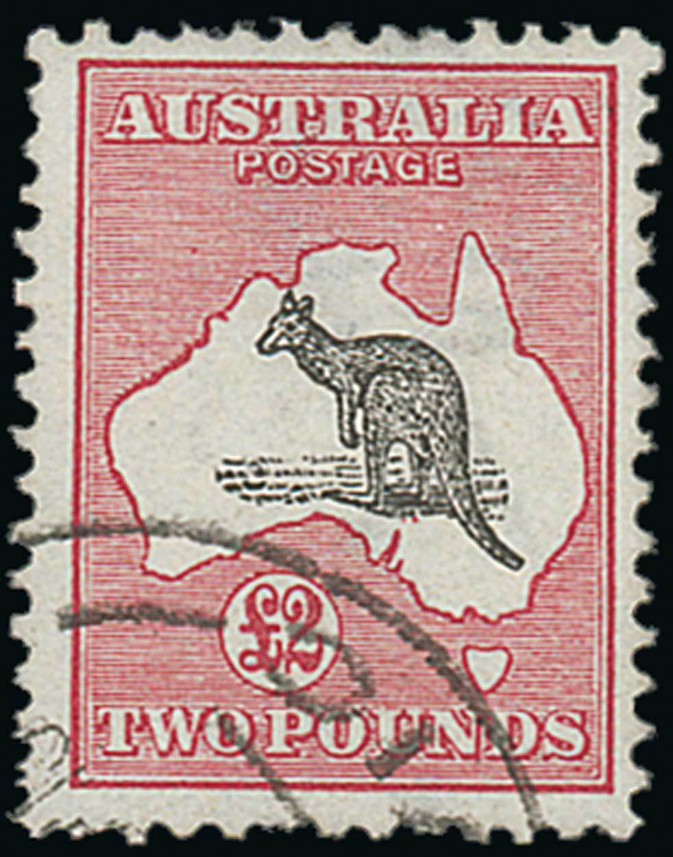 £2 black and rose, small part Victoria datestamp at foot; a couple of short perfs. at foot, otherwise sound. Scarce. Sc. 15; S.G. 16, £4,000. Photo