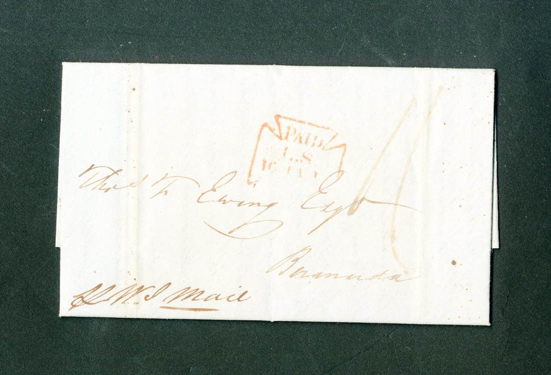 Mail continued to be carried once a month to Bermuda only by the West Indies packet via St. Thomas. At St. Thomas the route split to go to Mexico as well. During the previous period, Bermuda had two homeward bound services, by the West Indies and Mexican packets. Now her homeward bound mail was carried only by the Mexican packet