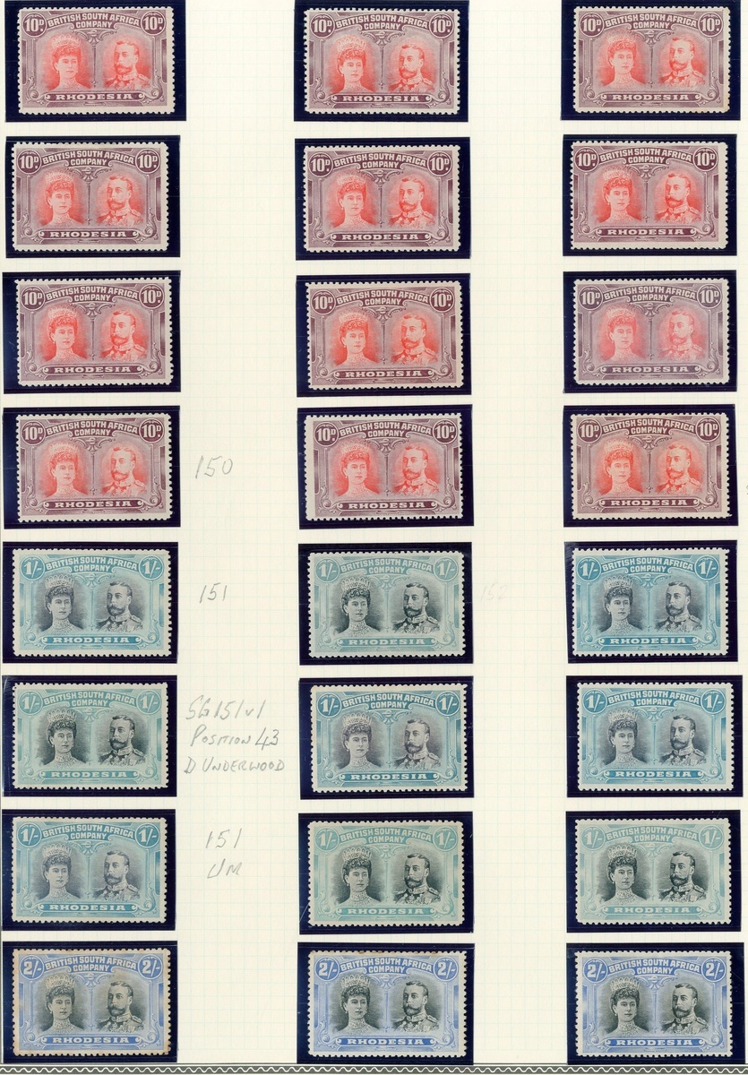 An unused/mint range comprising ½d. (34), 1d. (22), 2d. (31), 2½d. (15), 3d. (24), 4d. (17), 5d. (16, two with Long gash in Queen's ear), 6d. (17 with a marginal pair, one with Long gash in Queen's ear), 8d. (6), 10d. (16), 1/- (12), 2/- (15), 2/6d. (7), 3/- (8), 5/- (8), 7/6d. (9), 10/- (6) and £1 (3), perf. 15 ½d. (2), 1d. (4), 2½d. (9), 4d. (4) and perf. 13½ 8d. (7); faults in places though of generally good to fine appearance. Viewing essential