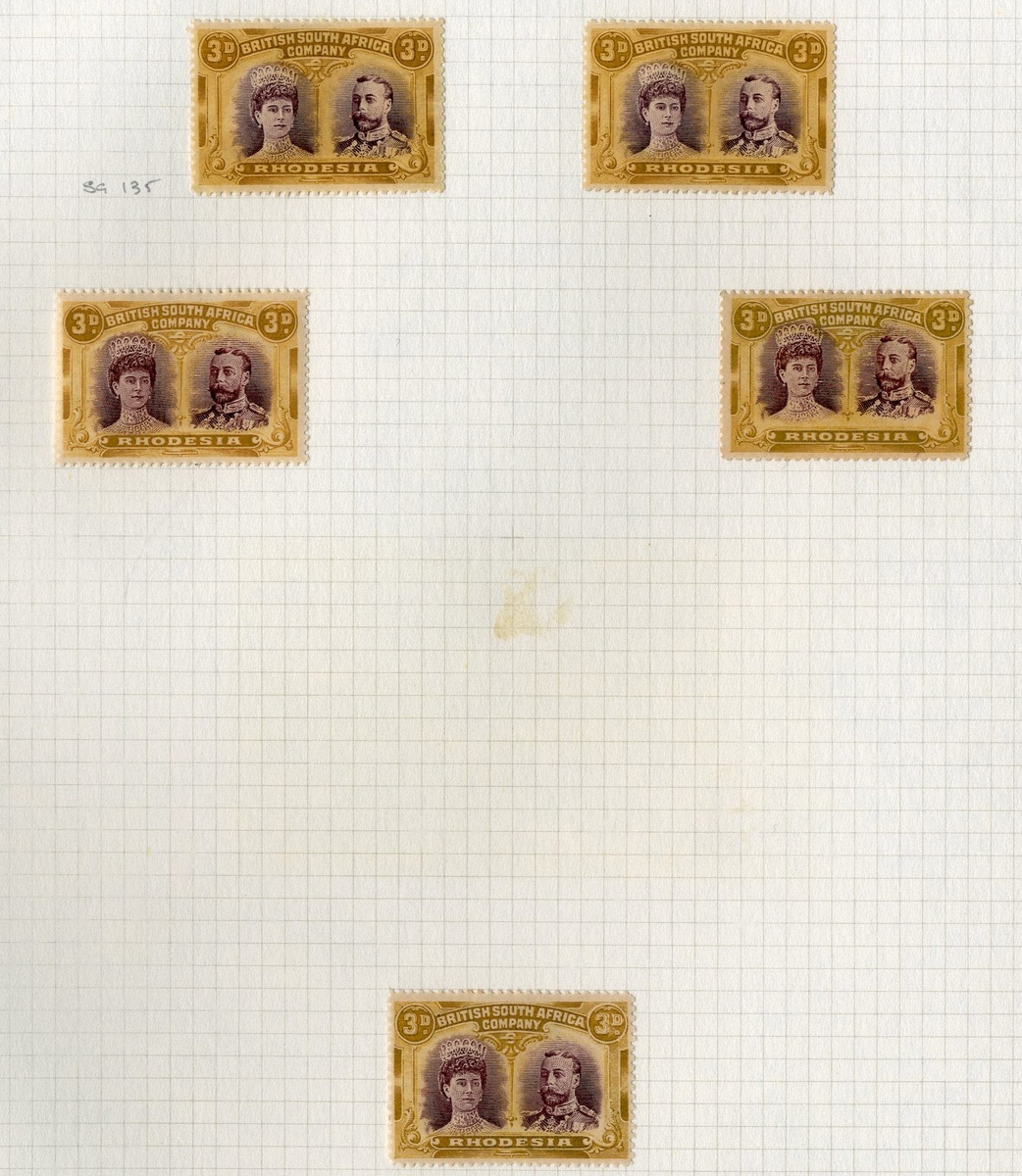 3d. selection comprising S.G. 134 (4, one from the upper right corner with sheet number (75), 135 (2), 136 with printer's mark and three others (RSC B/C/D/J groups?) with one showing medal retouch; good to fine mint and fresh colours, the corner single stamp remaining unmounted