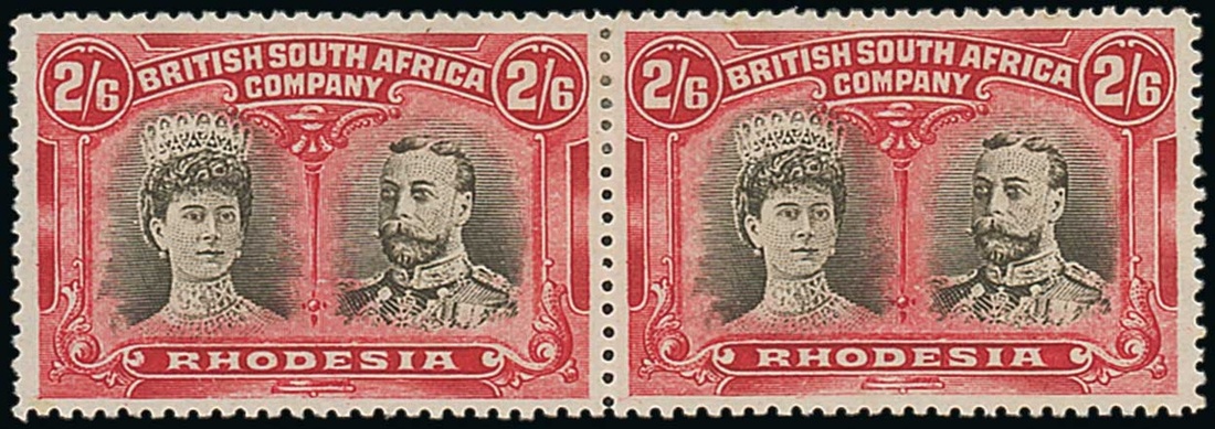 2/6d. black and lake horizontal pair, fresh colours and with large part original gum. A fine and scarce multiple. S.G. 155. Photo