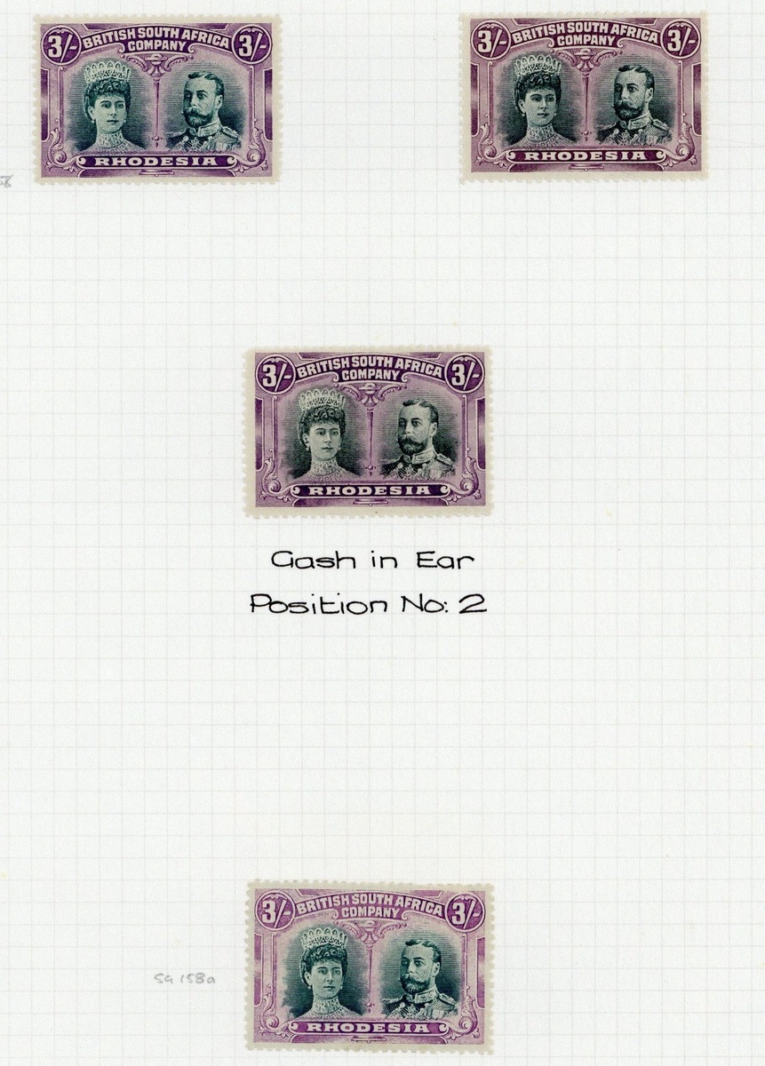 3/- green and violet (3, one [2] Long gash in Queen's ear) and 3/- bright green and magenta, large part original gum; the bright green and magenta with a few short perfs. at top, otherwise sound. S.G. 158, 158a