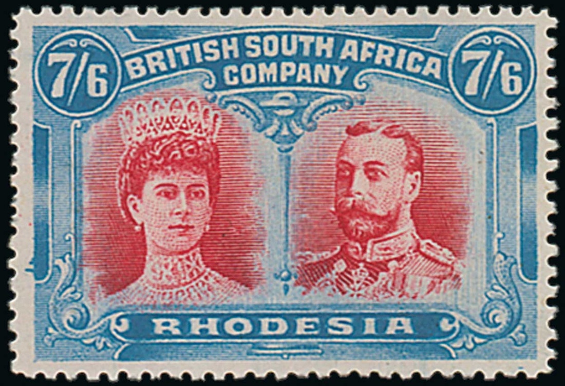 7/6d. carmine and light blue, mint with a hinge remainder at top; a fresh and bright shade. S.G. 161. Photo