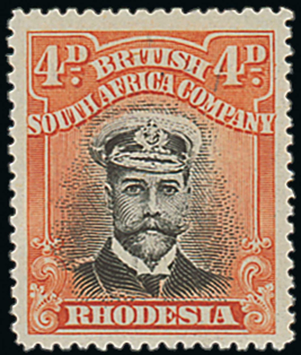 4d. black and deep orange-vermilion, part original gum; a couple of small marks at top though a presentable example of this rare sttamp. B.P.A. Certificate (2007). S.G. 245, £1,600. Photo