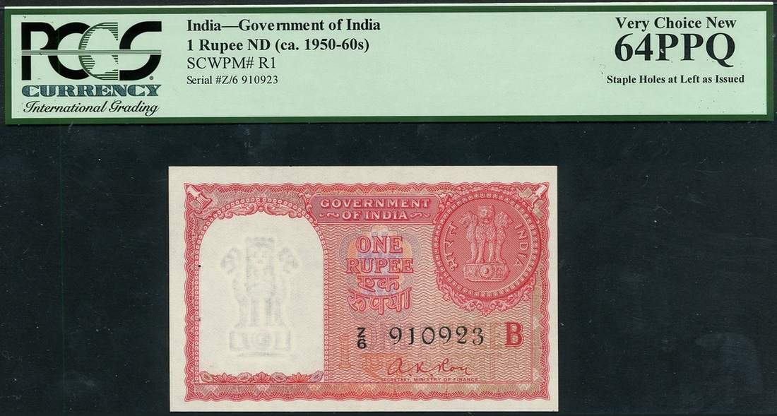 (Pick R1, Razack-JhunJhunwalla 6.12.1.1), usual staple holes at left, in PCGS holder number 64 PPQ, very choice uncirculated, scarce in this grade