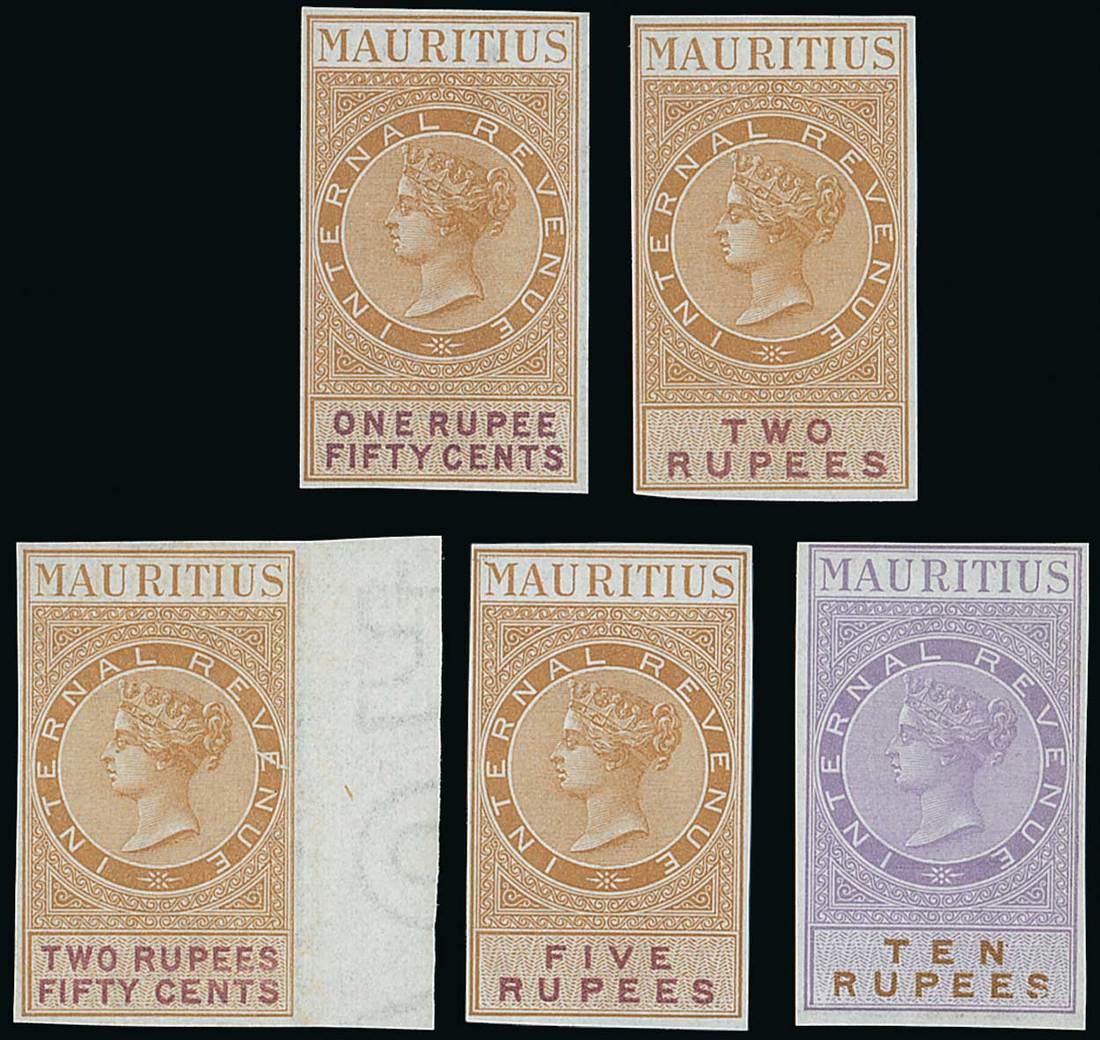 1879 selection of imperforate plate proofs on CA watermarked paper (9) in issued colours, comprising nine of the ten values issued in 1879, from 5c. to 10r. reddish purple. Fresh and attractive.