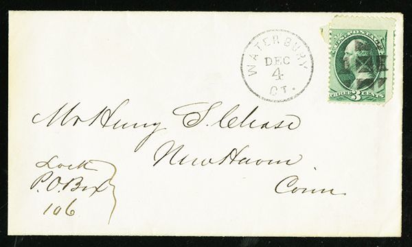 Garden Paths, Type 2 (Rohloff D-2), quality strike on 3c Green cover to New Haven, Connecticut, matching "Waterbury CT Dec 4" c.d.s., a scarce strike with Rohloff recording no more than eight examples, fine.