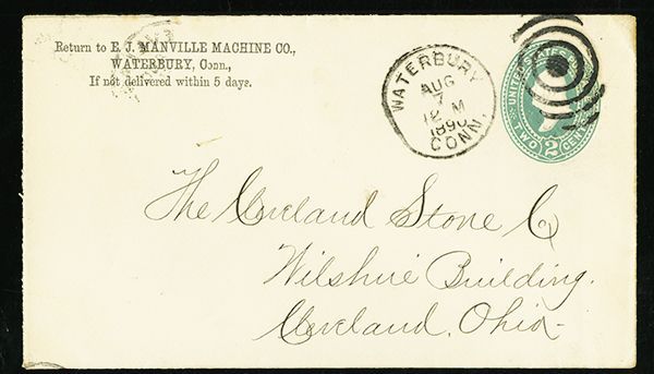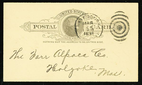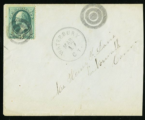 Bull's Eye & Target of Three Rings (Rohloff D-22/D-23), group of eight consisting of three examples of D-22, one each on 2c Bank Note, 2c postal stationery entire, and 1c postal card, and four examples of D-23, one each on 3c Bank Note (with P.F. certificate), 3c postal stationery entire, uprated 3c postal stationery entire, and 1c postal card, a nice group of select strikes, fine.