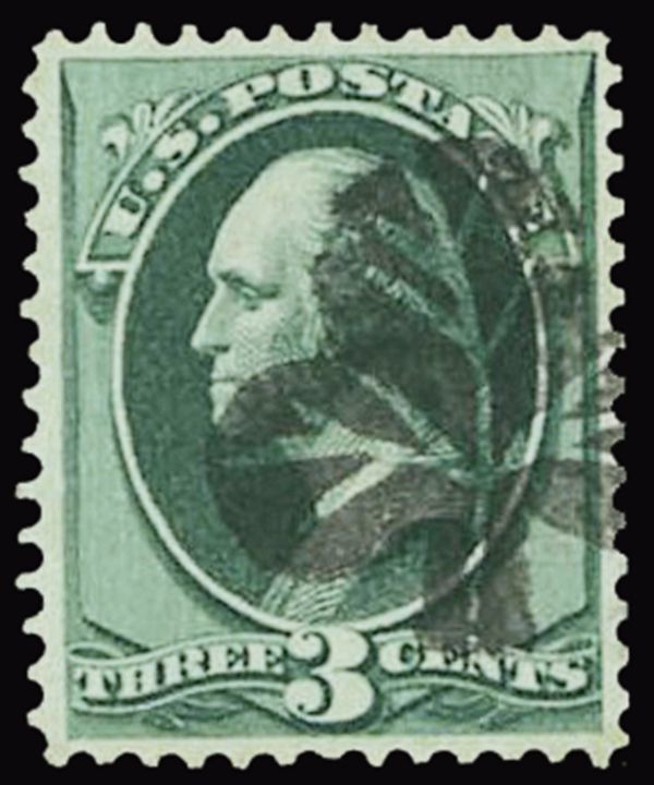Three-Leaf Shamrock, Type 4 (Rohloff F-11), nearly complete strike on 3c Green (158), the stamp with rich deep color, rare and very fine.