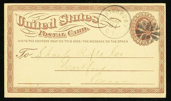Circular Grid, Type 5 (Rohloff H-5), choice strike on 1875 1c postal card, matching "Waterbury CT May 31" circular datestamp, to Hartford, Connecticut, extremely fine.