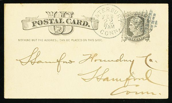 Oval Grid, Type 6 (Rohloff H-15/H-19), three examples of H-15, two clear strikes on 1c Black postal stationery cards to Stamford, Connecticut (postmarked a day apart), a third slightly variant example on oxidized 3c stationery entire to New York, one H-19 on 3c Rose cover to Waukegan, Illinois, chiefly fine.