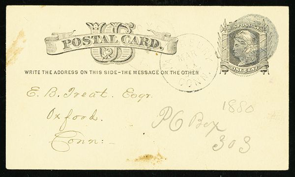 Negative "D" in Circle, Type 2 (Rohloff K-6), bold strike on 1c Black postal card (UX5), to Oxford, Connecticut, a few slight stains, fine; ex-Houser, with 1990 P.F. certificate.