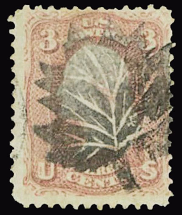 Maple Leaf, Type 1 (Rohloff L-6), choice strike on 3c Rose, similar to L-6 but with minor variations, stamp with negligible corner crease at top right, a lovely example of this rare strike, fine; with 2008 P.F. certificate.