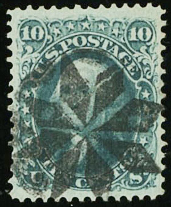 Rosette, Eight Segments, Type 5 (Rohloff P-14), select strike on 10c Yellow Green (96), fresh color and nicely-centered, attractive and extremely fine; with 1999 P.F. certificate.