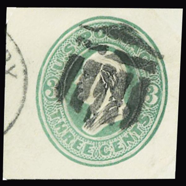 Shield, Five Bars, Solid Top, Type 1 & 2 (Rohloff Q-6 & Q-7), Type 1 full strike on 3c cut square, partial visible Waterbury c.d.s., Type 2 neat strike ties 3c Green (158) on large partial cover to Danbury, Connecticut, both very fine strikes.