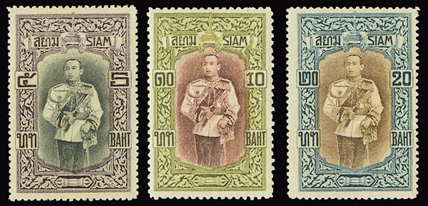 1912 5b violet & black to 20b slate blue & red brown, hinged, large part original gum, fresh colors, well-centered, the three top values of the set, fine-very fine. (Sc. 154-6, $950)