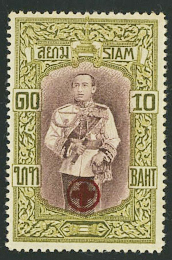 1918 10b olive green & violet brown, Red Cross semi-postal, hinge remnants, exceptional centering and wonderfully-detailed impression, usual violet post office marking on reverse, a beautiful stamp, very fine. (Sc. B10, $575)