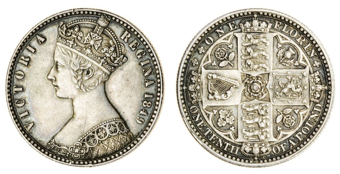 Victoria (1837-1901), 'Godless' Florin, 1849