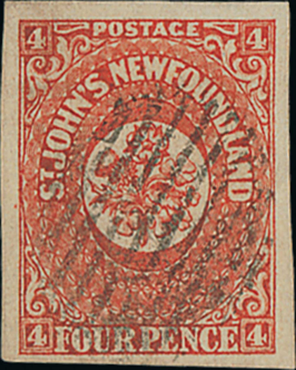 4d. scarlet-vermilion with good to large margins, neat oval of bars cancellation; a fine and most attractive example of this rare stamp. B.P.A. Certificate (1990). Sc. 4; S.G. 4, £3,500. Photo
