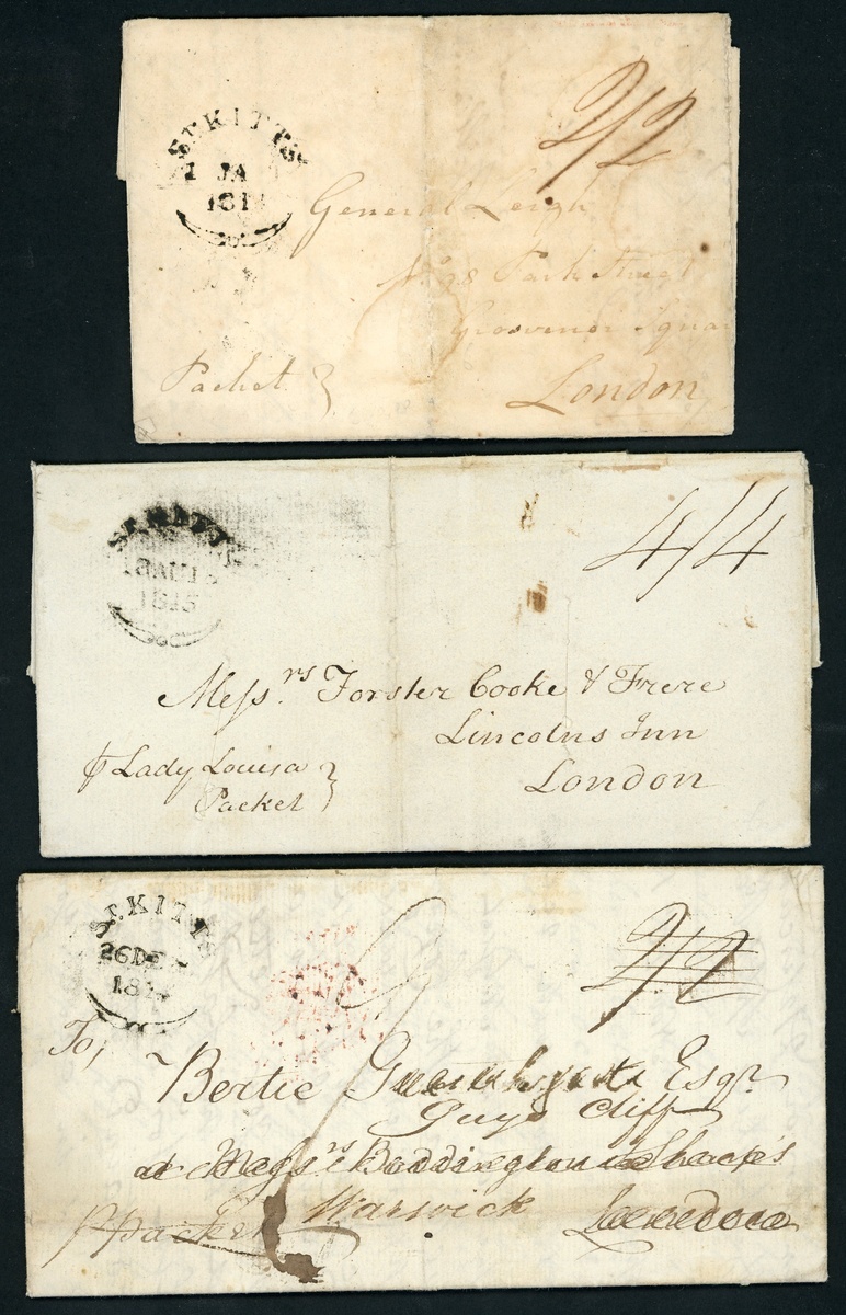 1813-24 entire letters (6) and an entire to London (4) or Scotland (2), variously rated, each showing