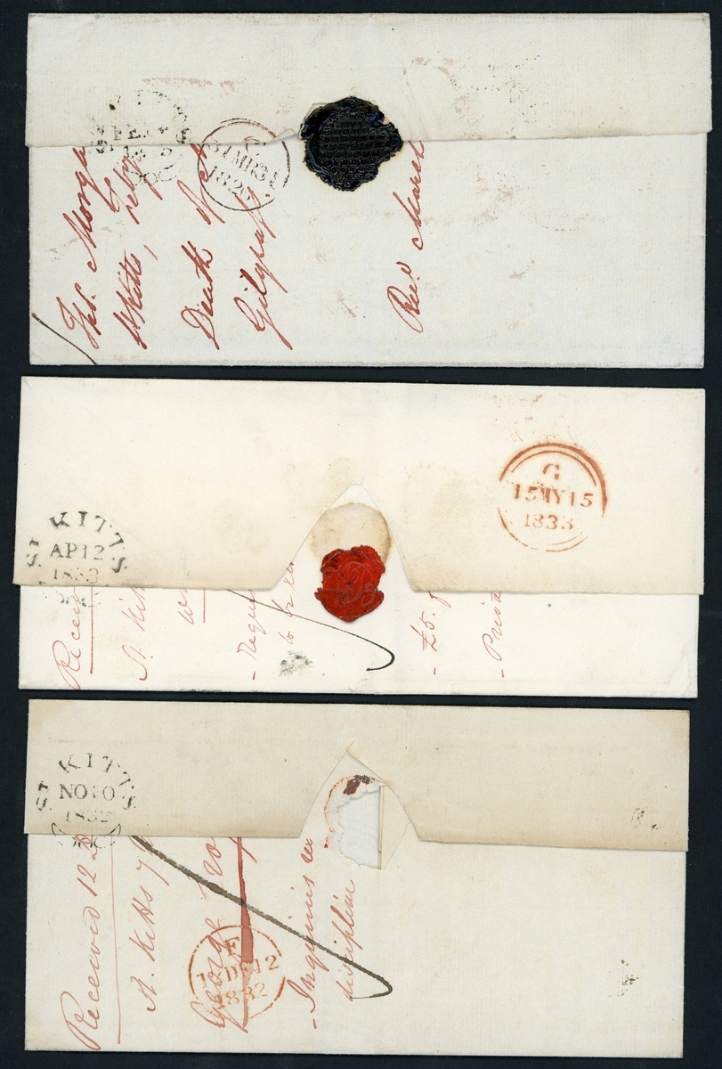 1824-32 entire letters (2, one from Antigua) and entires (4) to London, variously rated, each showing
