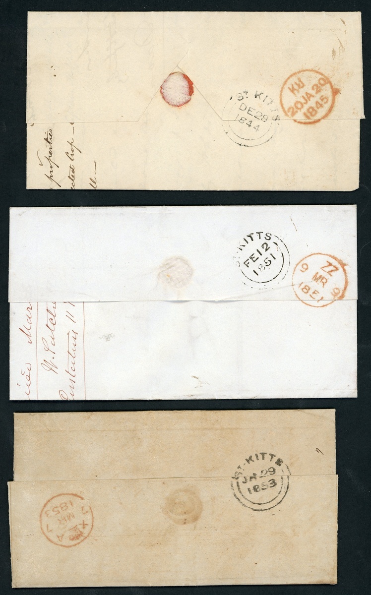 1844-53 entire letters (3) and an entire (Eustatius) to London (3) and Bahamas, rated "4" or "1/-" and showing, on reverse,