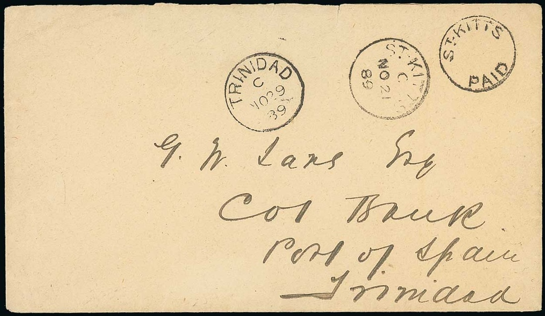 1889 (21 Nov.) envelope (flap missing) to Trinidad, showing fine circular undated