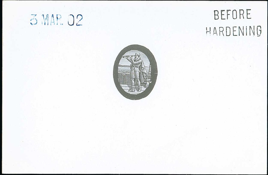 Columbus vignette with uncleared surround, in black on glazed card (92x60mm.) marked