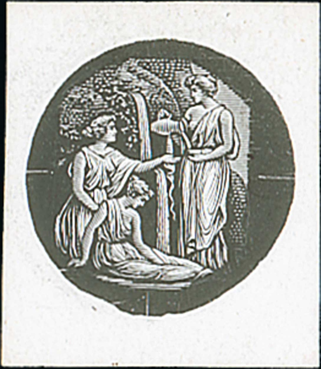 Medicinal Spring stamp-size vignette with uncleared surround in black on glazed card, fine. Photo
