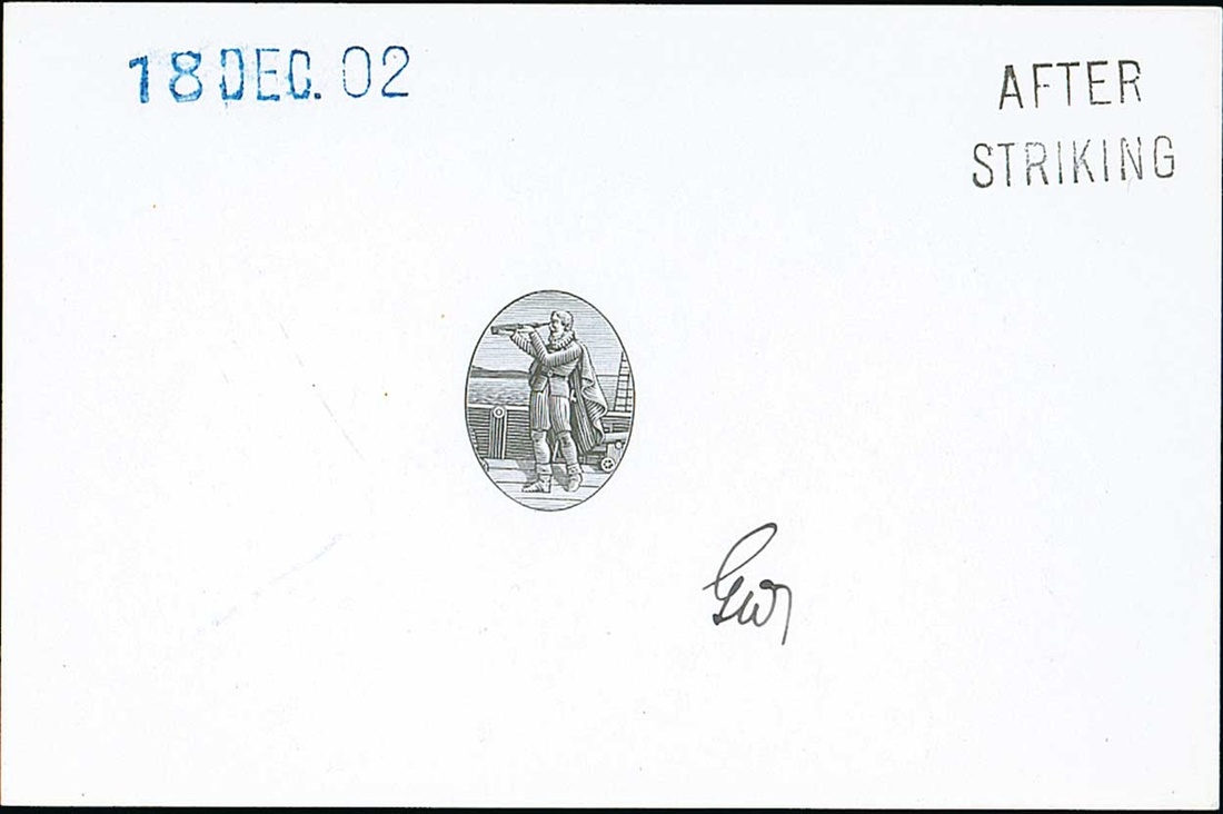 Columbus vignette in black on glazed card (92x60mm.), marked