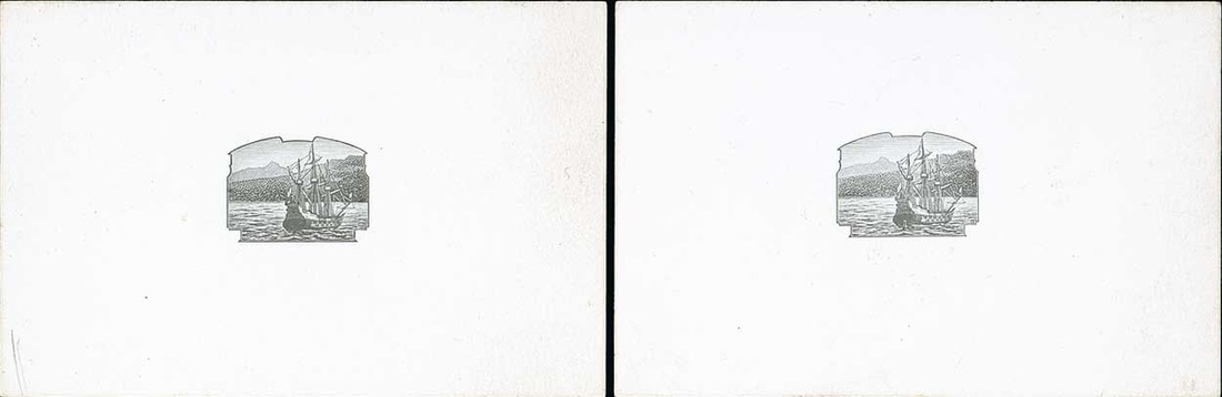 Vignette Types A (no rudder) and B, both in black on glazed card (92x60mm.) and unmarked, fine. Photo