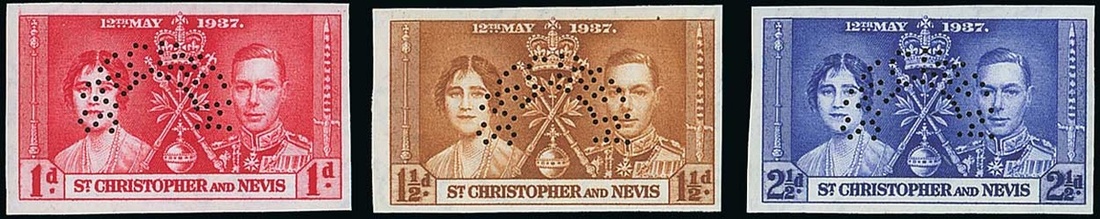 1937 Coronation imperforate set of three, each perforated