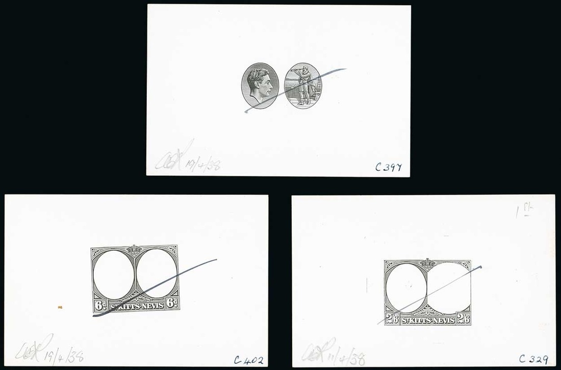 King's Head and Columbus vignette and 6d. and 2/6d. frames, each in black on glazed card (92x60mm.), marked