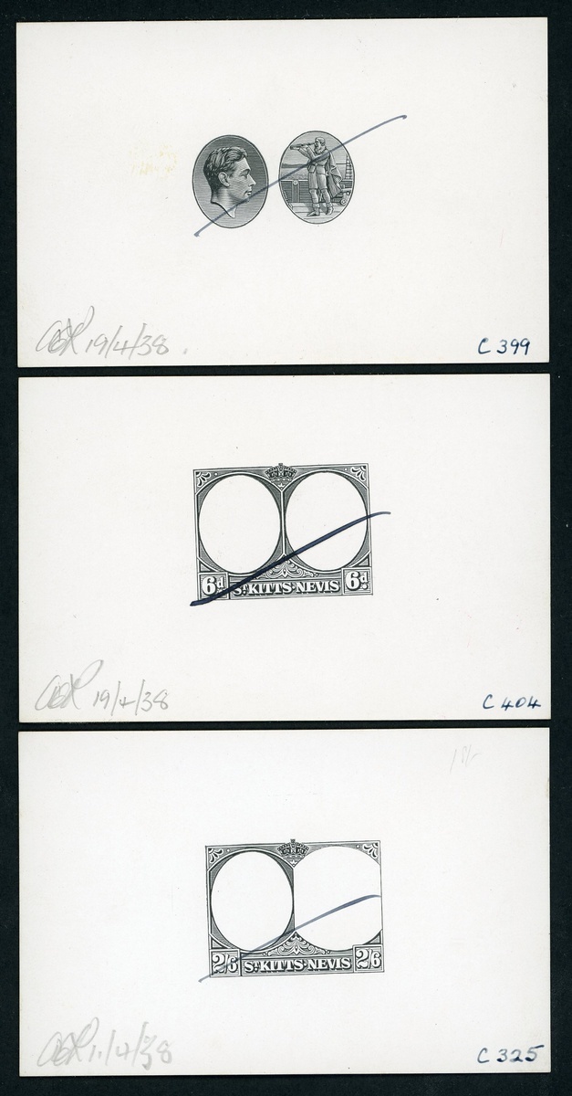 King's Head and Columbus vignette and 6d. and 2/6d. frames, each in black on glazed card (92x60mm.), marked