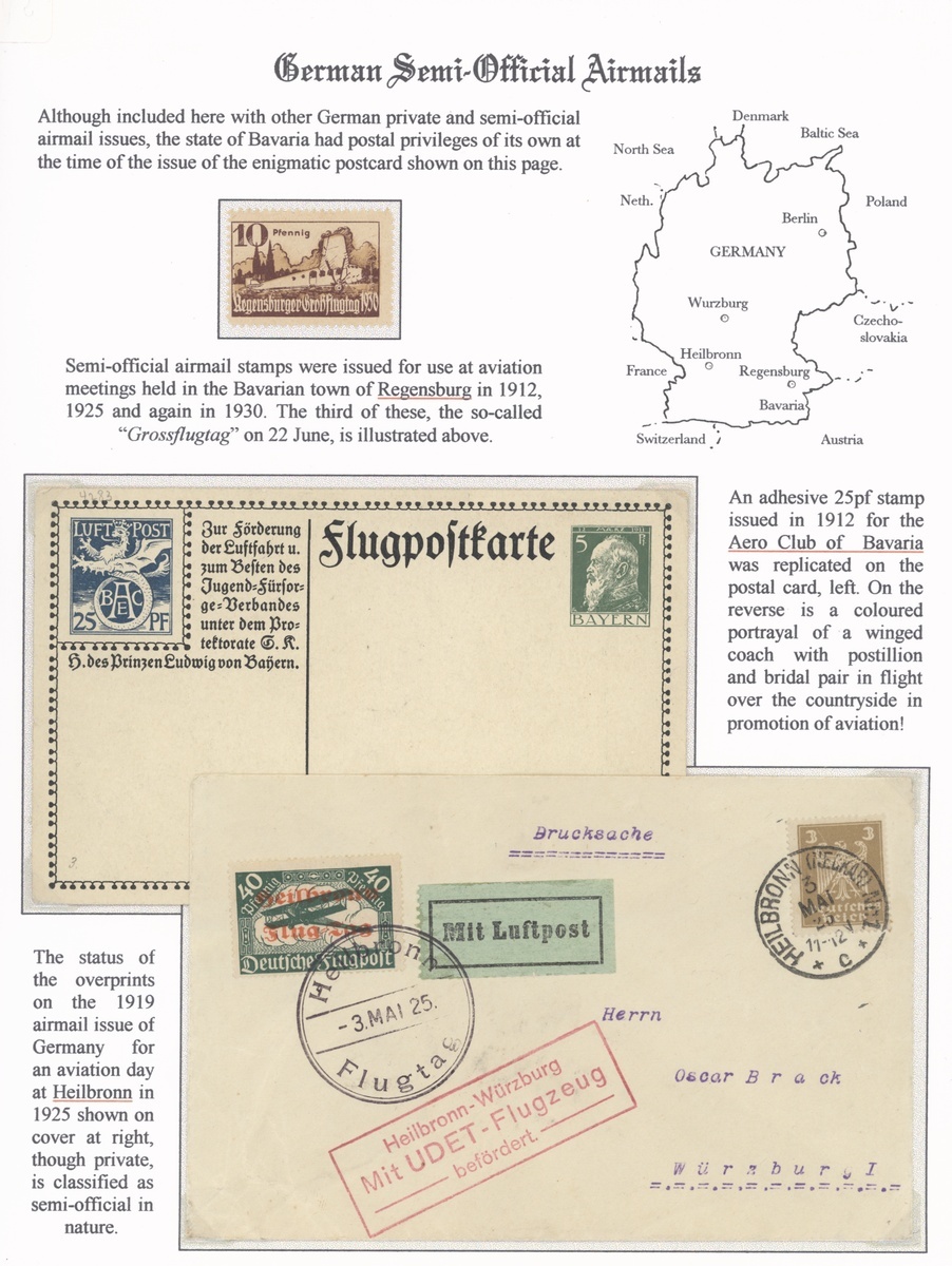 A collection on eleven pages including German States, better material including Schleswig-Holstein S.G. 1 fine mint, Heligoland 1875 50pf. (6d.) fine used on cover to mainland Germany, Breslau Hansa Jewish New Year 1½pf fm (Mi. 15), Leipzig Lipsia 3pf. (Mi.11b) on 1893 cover; Soviet Zone Lauterbach 10pf. very fine used pair on piece with variety (Mi 1ii) and 8 semi-official airs including Gotha-Erfurt 10pf. mint (Mi. 5). Occasional forgeries noted as almost always with German states, nevertheless a fine and meticulously researched collection