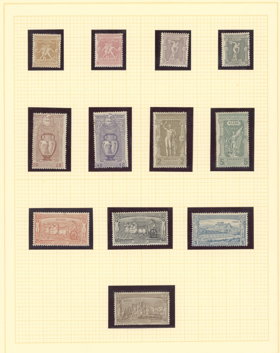 1896 Olympic Games set, unmounted mint or original gum (2d.), 40L. with small stain; otherwise chiefly fine and a very rare set in this condition. S.G. 110-121, £1,500. Photo