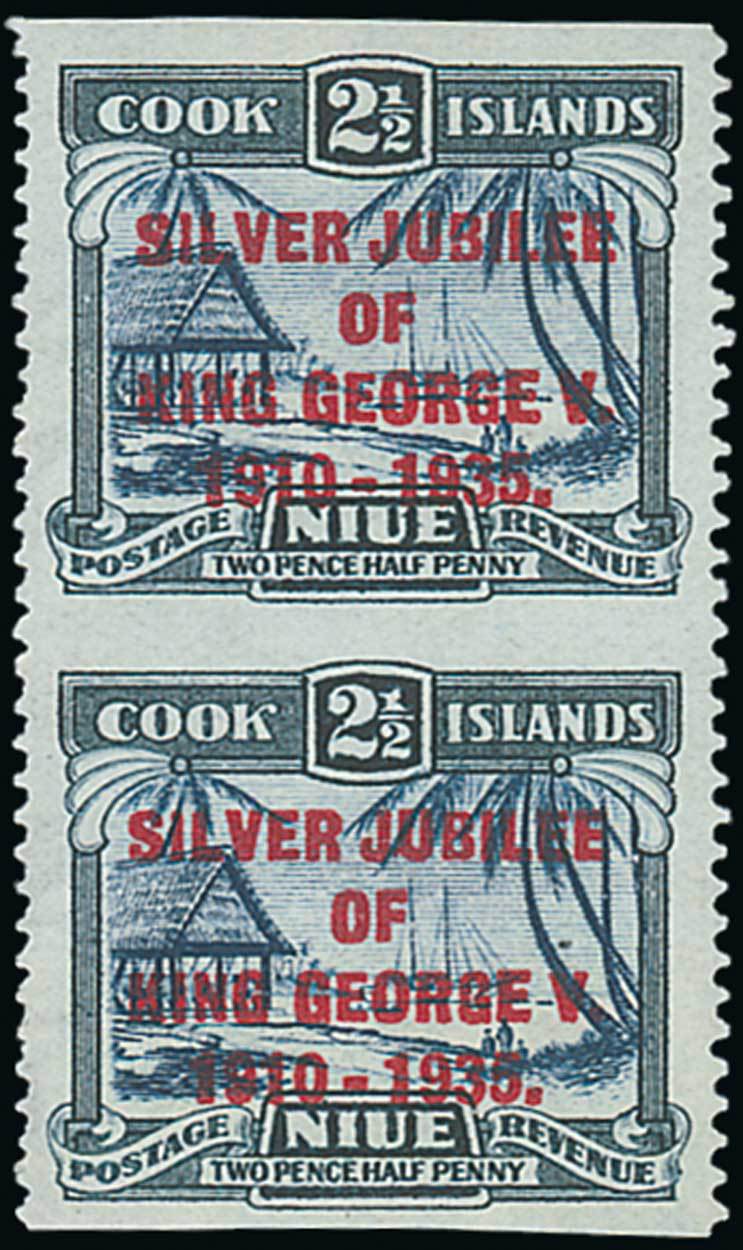 1935 Silver Jubilee 2½d. dull and deep blue vertical pair, variety imperforate horizontally, fresh mint. S.G. 70 var. See note after S.G. 71. Photo