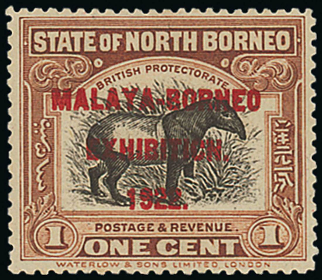1922 Malaya Borneo Exhibition 1c. brown with variety