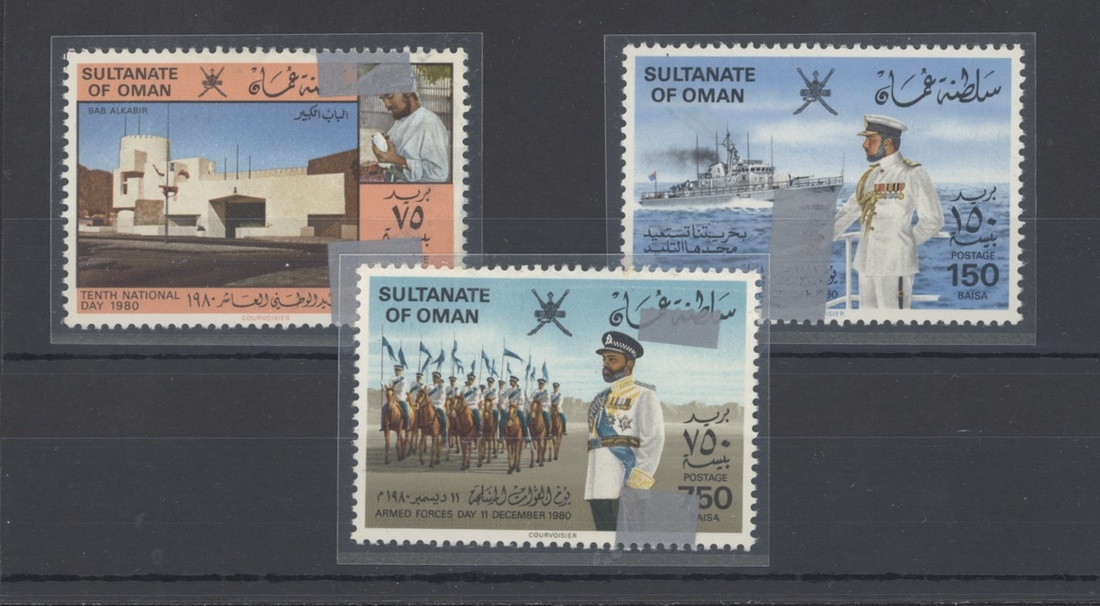 1980 surcharges, 75b., 150b. and 750b. each with misplaced silver and surcharge omitted, unmounted mint, 75b. with silver marks on reverse, 750b. with creases at top. Rare. 241var.-243var.